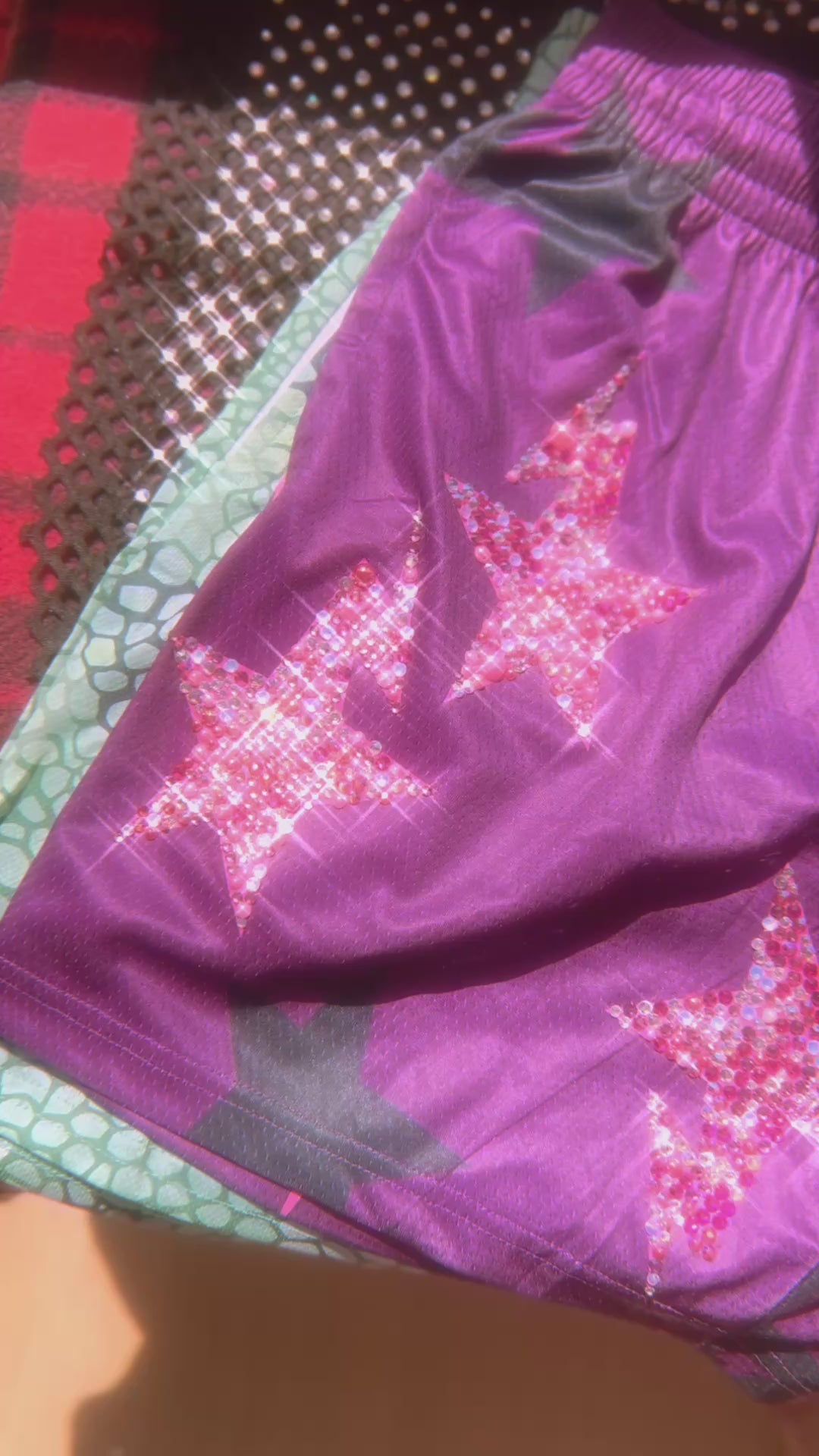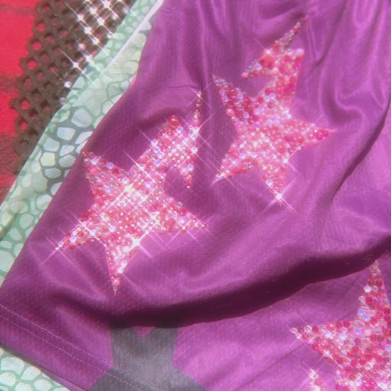 Drenched in shimmer and laced with attitude, the Cosmic Drip Shorts are a stellar blend of bold and luxe. Hand-embellished with crystal rhinestones that catch every glimmer of light, these shorts are made to be seen. Whether you’re dancing under the stars or strutting through the city, the cosmic drip guarantees gravity-defying attention.
