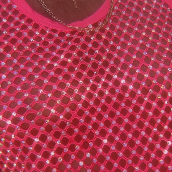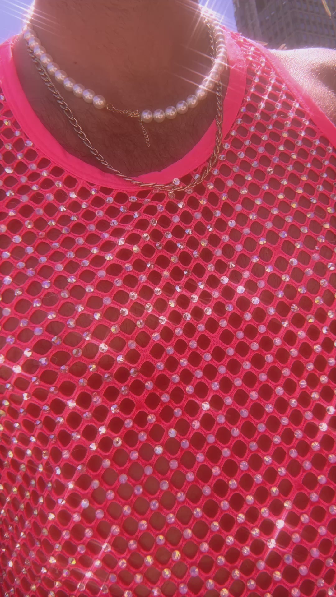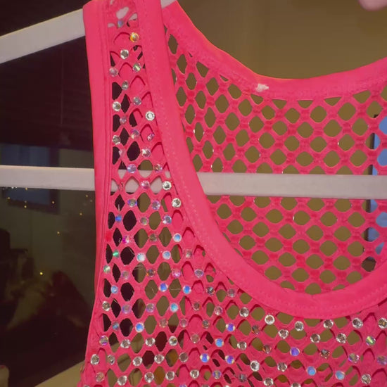 This is not your average mesh tank---this is the Hot MeSSH Tank, hand-embellished with premium crystal glass rhinestones and crafted to make you the main character, wherever you go. Each piece is reimagined for a more sustainable world---because sparkle shouldn't come at the planet's expense. Fully rhinestoned with precision and intention, catching every flicker of light like a wearable disco ball. Whether you're hitting the dance floor, the beach or just the city streets, this tank does all the talking!